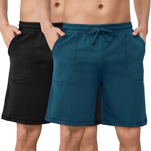 Aseniza 2-pack herr pyjamasbyxor korta bomull pyjamasbyxor sovshorts sommar bermudabyxor loungewear loungebyxor för män, Svart-blå, XL