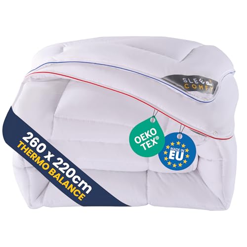 Sleep Comfort Lyxigt vintertäcke 260 x 220, 4 säsonger extra varmt, stort täcke med 2 kombinerbara delar, året runt, sovtäcke för sommar och vinter, vinterfilt, vintertäcken