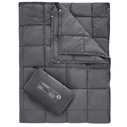 KingCamp Campingfilt, termofilt, ultralätt, multifunktionell, varm, för resor, utomhus, med tryckknappar, lätt sovtäcke för vandring, picknick, hem, bil, 175 x 135 cm