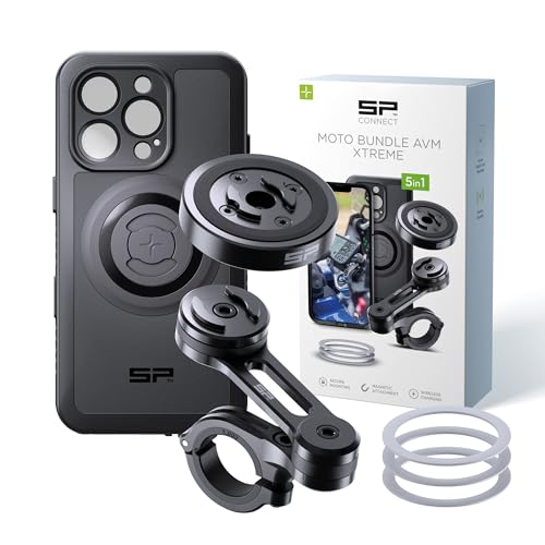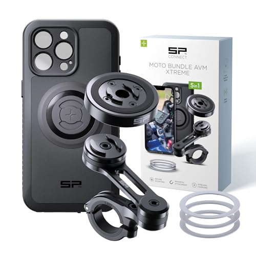 SP CONNECT Moto Bundle II AVM Xtreme | SPC+ | Hållare kompatibel med iPhone 15 Pro Max | Mobiltelefonhållare för motorcykel | Mobiltelefonhållare Smartphone | Tillbehör vibrationsdämpad för moped