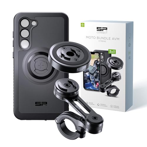 SP CONNECT Moto Bundle II AVM Xtreme | SPC+ | Hållare kompatibel med Samsung S24 | Mobiltelefonhållare för motorcykel | Mobiltelefonhållare Smartphone | Tillbehör vibrationsdämpad för moped moped