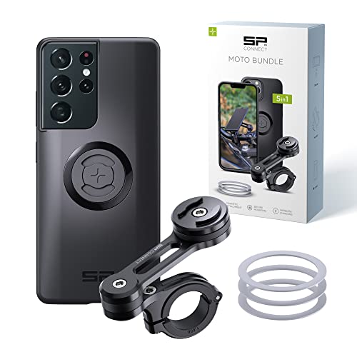 SP CONNECT Moto Bundle II | SPC+ | kompatibel med Samsung S21 Ultra | Mobiltelefonhållare för motorcykel cykel moped skoter | Gadgethållare för navigatorn