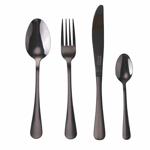 GALILEO SpA Set med 24 polerade svarta bestick i rostfritt stål, 5Th Avenue Sibilla