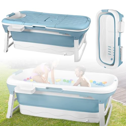 Badkar för vuxna, hopfällbart barnbadkar, hopfällbart varmt vatten bad kallt doppningsbadkar, blötläggningsbehållare, bastubadkar lock och tvålask, spa-badkar, familjespa badkar för litet badrum