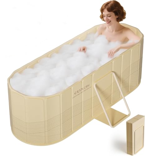 NArra Bärbart vikbart badkar för vuxna, 2-i-1 hot bath & isbad, stor storlek fristående blötläggning bad, förtjockad isolering SPA, bastu, par duschkar, 150 x 55 x 53 cm/4,92 fot (inget lock)