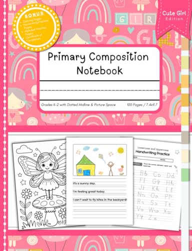 Primary Composition Notebook – Cute Girl Edition: Draw and Write Journal for Grades K–2 with Dotted Midline, Handwriting Paper & Picture Space