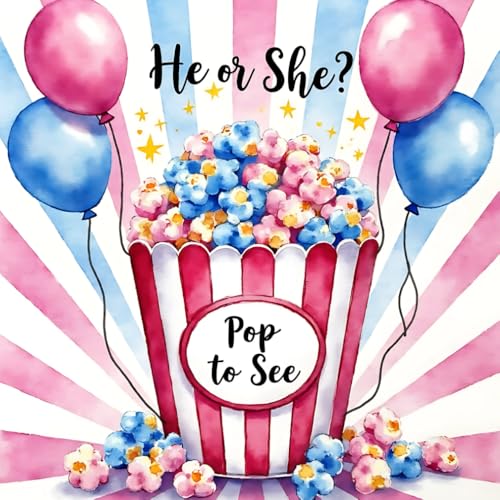 He or She POP to See Gender Reveal Guest Book – Popcorn Baby Shower Memory Keepsake: Fun Movie Night Popcorn Theme Baby Shower Sign-In Book with Space ... – Boy or Girl Reveal Party Keepsake