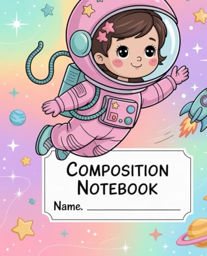 Space Girl Composition Notebook, Primary Ruled Dotted Midline, Writing, Drawing, Coloring, Early Childhood Kindergarten