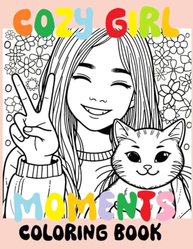 Cozy Girl Moment Coloring Book: Bold an Easy for Adults and Teens- For Stress Relief and Mindfulness-Cute Space with Pets