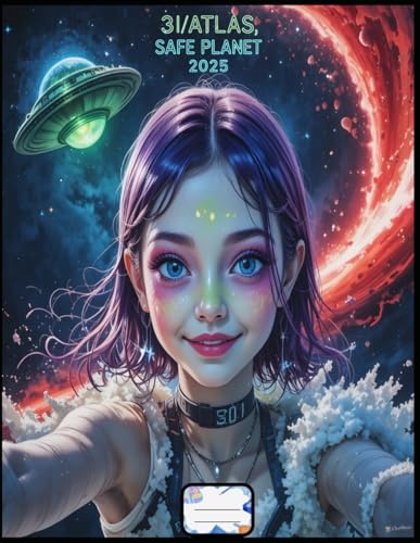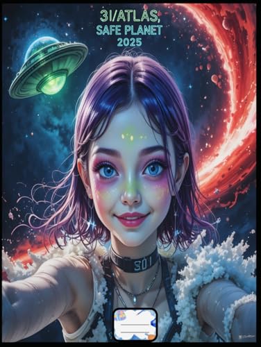Comet 3I/ATLAS – Safe Planet 2025 – Selfie Girl Space Notebook | 140 Pages | Grey Grid Journal