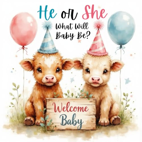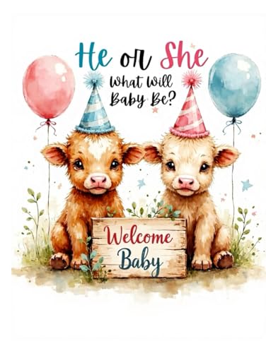 He or She Highland Cow Gender Reveal Hardcover Guest Book – Rustic Baby Shower Memory Keepsake: Country Farm Theme Baby Shower Sign-In Book with Space ... – Boy or Girl Reveal Party Keepsake