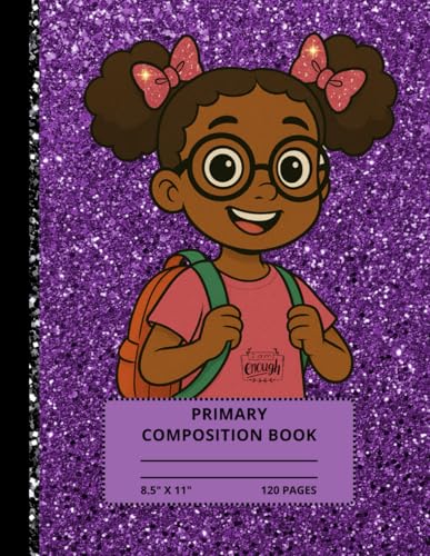 Black Girl Primary Composition Notebook: K-2, For Girls, Cute, Purple 120 pages, 8.5"x11": Draw and Write Journal with Picture Space