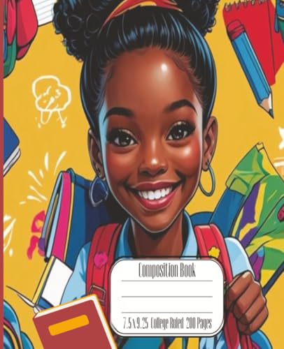 Composition Notebook: Beautiful Black Girl on the Cover, 200-Pages, For Girls Ages 8–12 with Affirmation Coloring Pages, Study Helpers in Math & Reading, and College-Ruled Writing Space