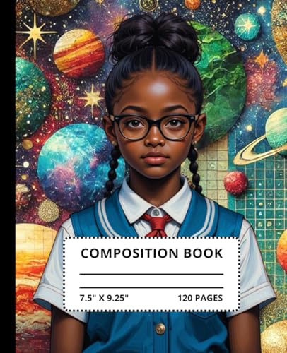 Black Girl Composition Notebook: Space Themed, Wide Ruled For School