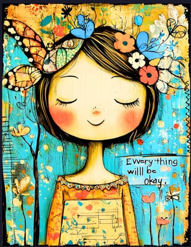 Everything Will Be Okay – A Calm Space to Write, Feel & Grow: 8x11 Inch 160-Page Lined Notebook | Soft Girl Art with Motivational Vibes | Journal for Mindfulness, Teens & Women