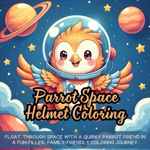 Parrot Space Helmet Coloring: Float through space with a quirky parrot friend in a fun-filled, family-friendly coloring journey.