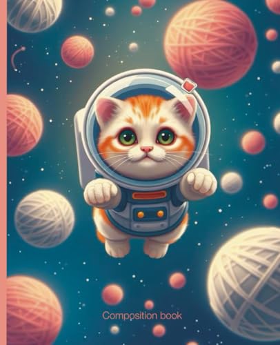 Composition book: Astronaut Cat Notebook | College Ruled | Cute Space Journal with Cat in Bubble Helmet & Yarn Planets | 7.5 x 9.25 in, 100 Pages