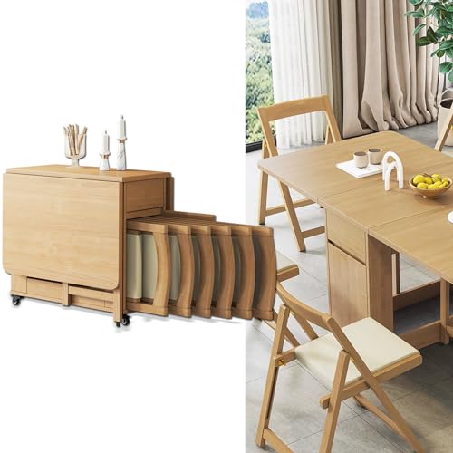 51.2in Folding Dining Table Set with 4 Upholstered Chairs Fruit Wood Color Solid Wood Space Saver Furniture for Dining Halls Balconies and Narrow Spaces