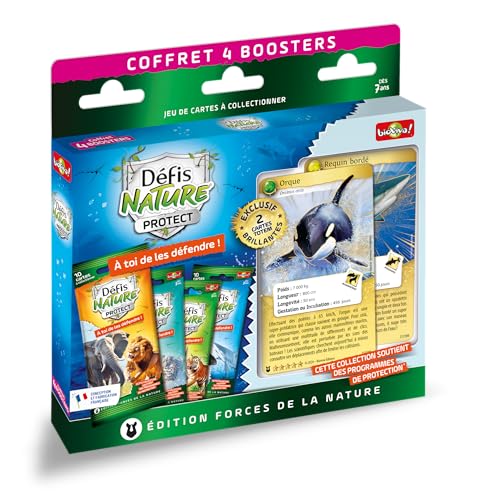 Bioviva Nature Protect Challenge Booster Box + 2 glänsande totemkort späckhuggare och haj kantad - 1 affisch med listan över alla djur - från 7 år-710299, 710299