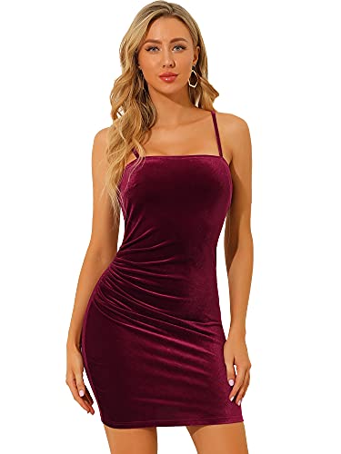 Allegra K Women's Velvet Sleeveless Mini Dress Spaghetti Strap Party Bodycon Dresses Small Burgundy