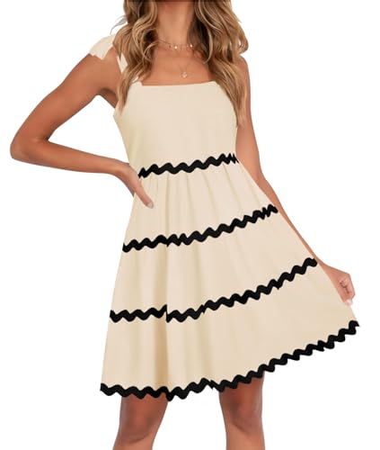 ZESICA Women's Summer Swing Mini Dress Casual Spaghetti Straps Sleeveless Smocked Backless Flowy A Line Sundress,Apricot,Small
