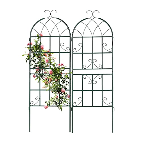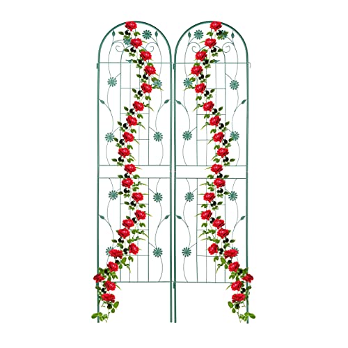 Sungmor Stora smidesjärn trädgårdsspaljéer för klätterväxter – 203 cm höga och 2 st vita paket – vacker metallstaket spaljé i retrostil – trädgårdsvinrankor växtstöd för blomma, rosenklättring