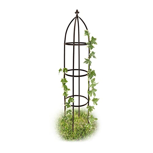 Relaxdays Spaljé Obelisk, 190 cm hög, rankpelare för klätterväxter, av metall, fristående, rostorn, svart