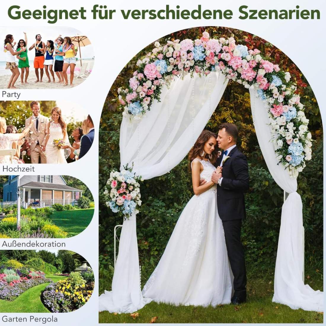 ENLLY Trädgårdsbåge Berså Spaljé Rose Bersåvalv for klätterväxter Utomhus gräsmatta Bakgård, väderbeständig metallbågbröllop 140x230/160x220/200x220/240x220cm (Color : Vit, Size : W240cmxH220cm)