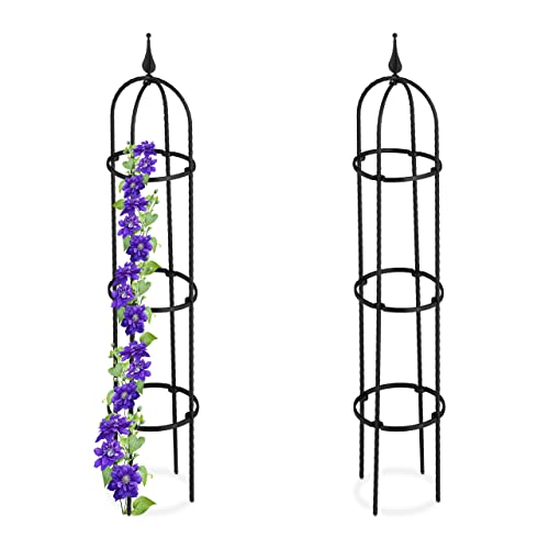 Relaxdays Spaljé Obelisk, set om 2, 70 cm hög, rankpelare för klätterväxter, metall, fristående, rostorn, svart, 70 x 20 cm