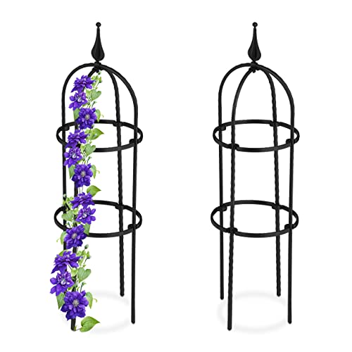 Relaxdays Spaljé Obelisk, uppsättning av 2, 100 cm hög, rankpelare för klätterväxter, metall, fristående, rostorn, svart