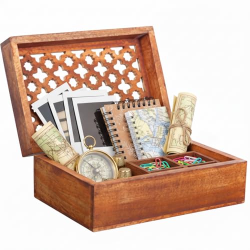 Trä minnessak låda med gångjärn lock i spaljé design – dekorativ trälåda som används som förvaringsbox, förvaringsbox, smyckeskrin eller smyckeskrin – medium polerad finish, 25 x 19 x 10 cm, extra