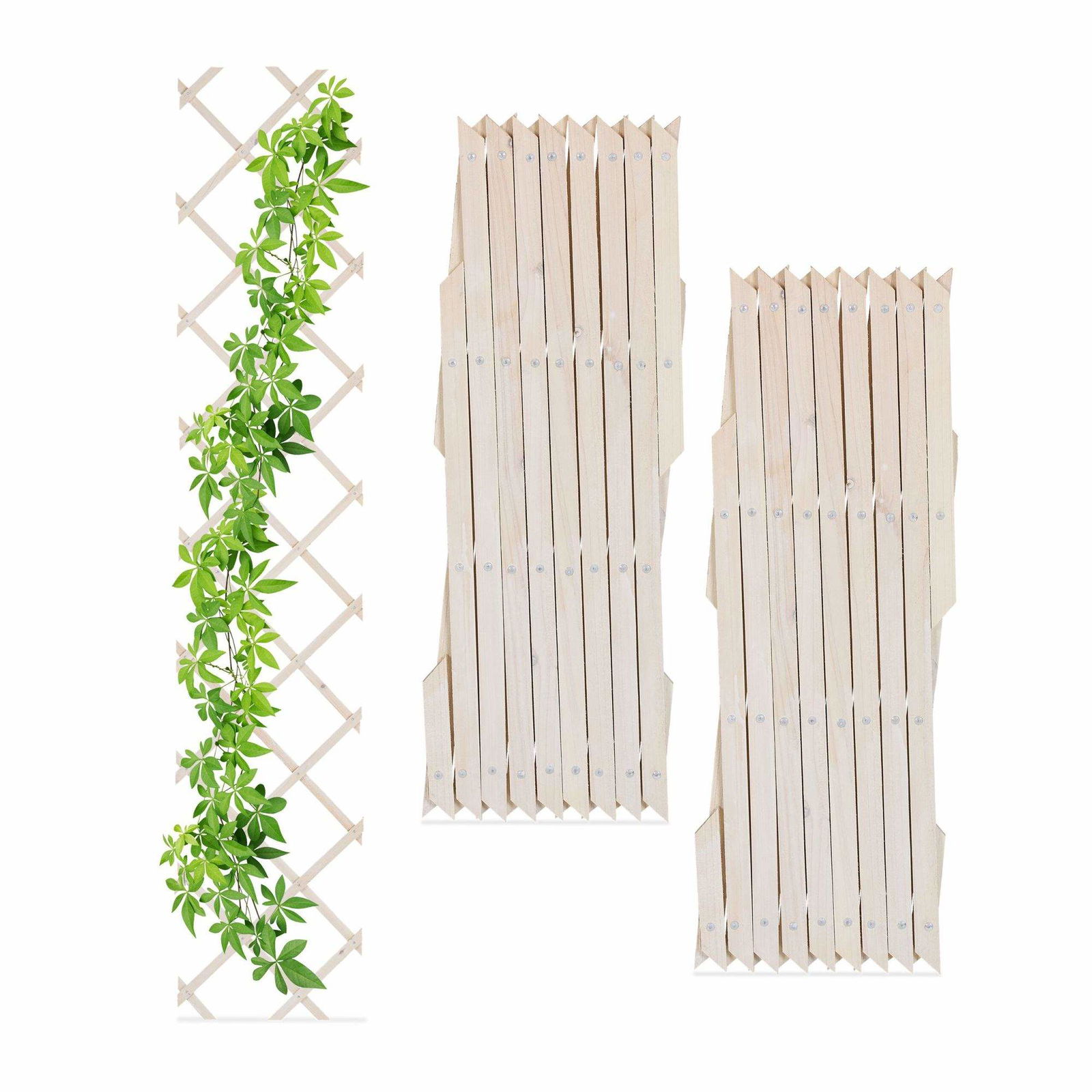 Relaxdays Spaljé utdragbart, set om 3, växtstöd klätterväxter, 180 x 60 cm, trädgård, balkong och terrass, trä, natur
