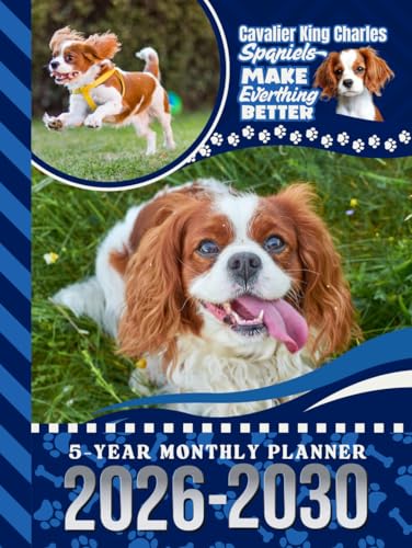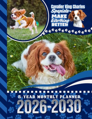 5-Year Monthly Planner 2026-2030: Hardcover / Dated Large / 60 Month Agenda / With Notes Pages - To Do List / Cavalier King Charles Spaniel Dog Art Cover Design