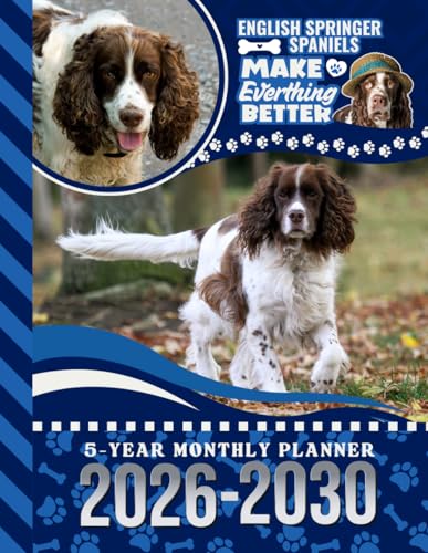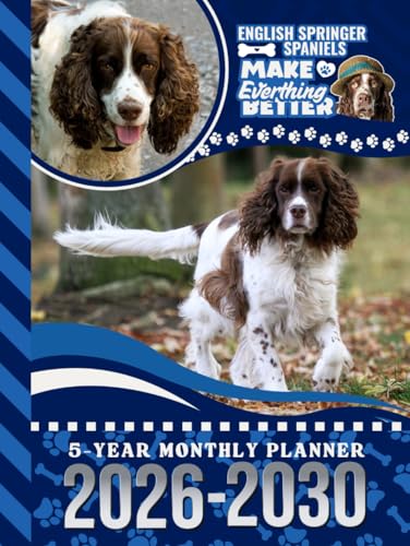 5-Year Monthly Planner 2026-2030: Hardcover / Dated Large / 60 Month Agenda / With Notes Pages - To Do List / English Springer Spaniel Dog Art Cover Design