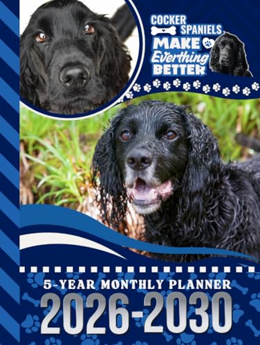 5-Year Monthly Planner 2026-2030: Hardcover / Dated Large / 60 Month Agenda / With Notes Pages - To Do List / Black Cocker Spaniel Dog Art Cover Design