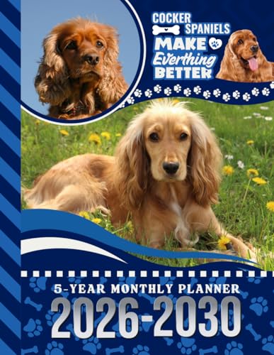 5-Year Monthly Planner 2026-2030: Hardcover / Dated Large / 60 Month Agenda / With Notes Pages - To Do List / Red Cocker Spaniel Dog Art Cover Design