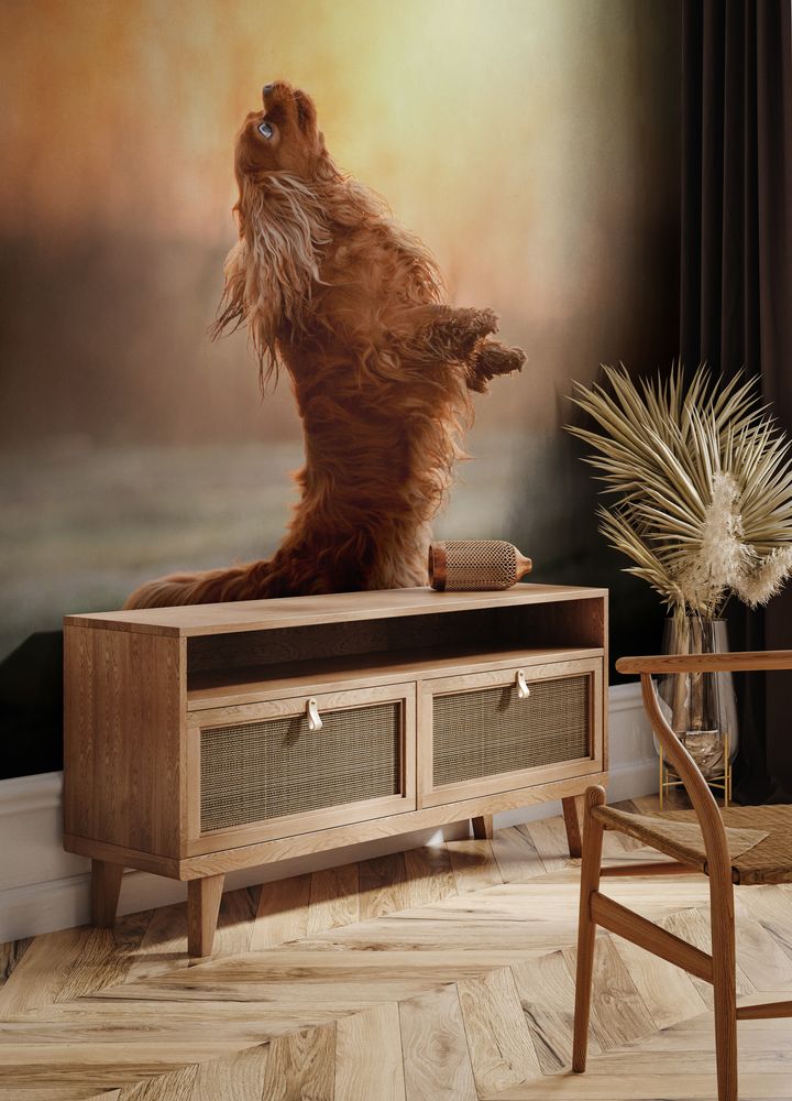 Fototapet -Cavalier king charles spaniel dog doing tricks beautiful dawn magical light portrait - Hall - Scandiwall - Hund