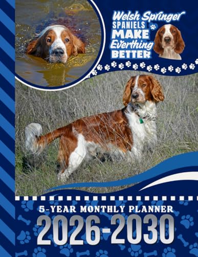 5-Year Monthly Planner 2026-2030: Hardcover / Dated Large / 60 Month Agenda / With Notes Pages - To Do List / Welsh Springer Spaniel Dog Art Cover Design