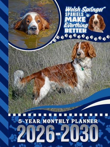 5-Year Monthly Planner 2026-2030: Dated Large / 60 Month Agenda / With Notes Pages - To Do List / Welsh Springer Spaniel Dog Art Cover Design