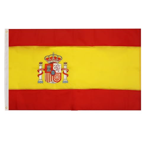 AZ FLAG - Spaniens premium flagga - 150 x 90 cm - spansk flagga sydd och broderad nylon 200D med integrerade metallöglor - 200 g