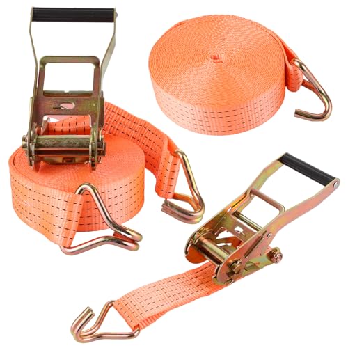 GBACHOOSE 2 stycken spännremme 3 000 kg, 10 m x 50 mm spärrrem, spärrbälte med polyesterkrokar, spännremmar med krokar, spännband för släpvagn, motorcykel, bil, varor