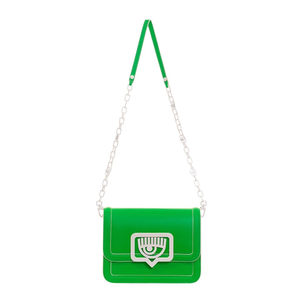 Chiara Ferragni Collection, Väskor , Dam, ONE Size, Läder, Grön Vegan Crossbody-väska med Eye Like Spänne