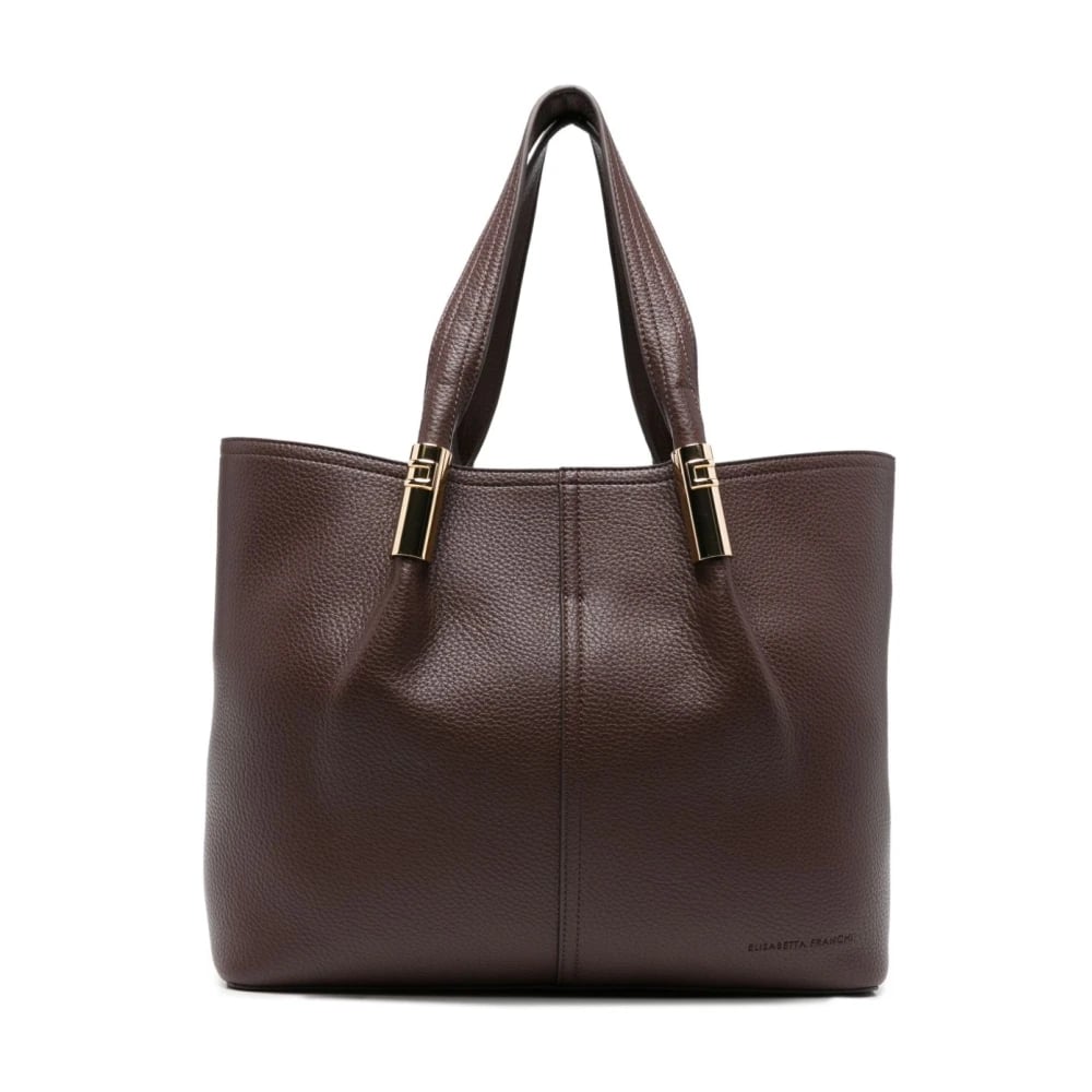 Elisabetta Franchi, Väskor , Dam, ONE Size, Brun Strukturerad Väska med Guldtonad Spänne