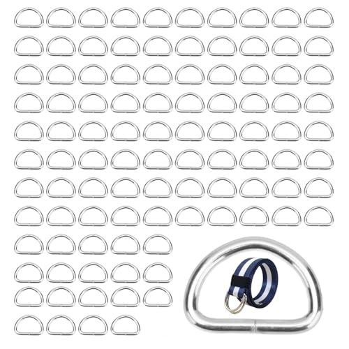 Metall D-Rings Spänne, 100st Metall Bältes Spänne D Form Ringar Hårdvara Sortiment för Webbing Sy DIY Remmar Knyttar Bälten Väskor(Silver)