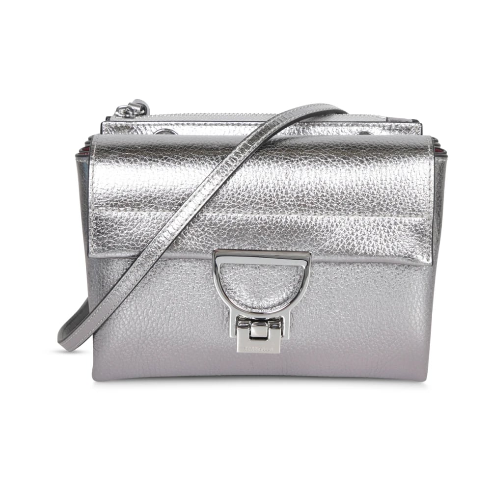 Coccinelle, Väskor , Dam, ONE Size, Läder, Grå Metallic Läder Mini Väska med Spänne