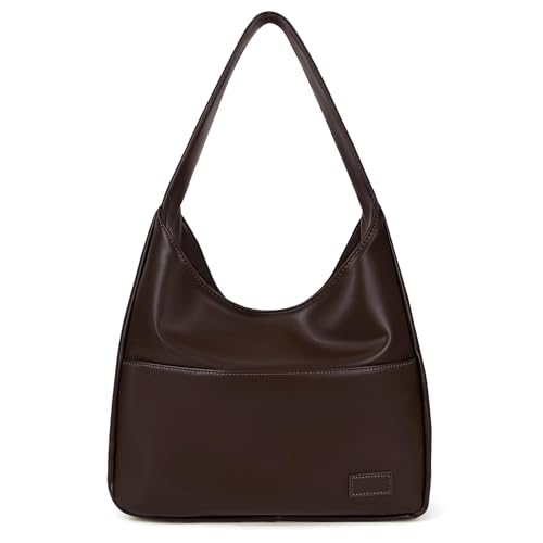 GSenhui Axelväska, vintageläderväska, retroaxelväska, bärväska, hobo tote bag, med stor kapacitet och magnetiskt spänne, brun