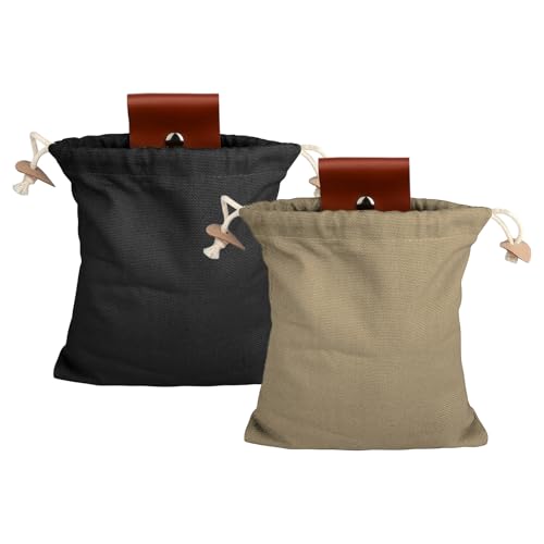 2-pack Bushcraft-utrustning för fodersökning, svampkorg, foderpåse för vandring, vikbar, läderbälte väska, foraging, dragsko och spänne, mushroom foraging, midjeväska (svart & khaki)