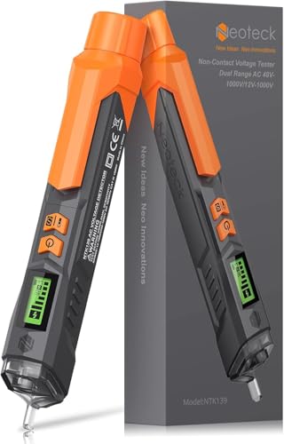Neoteck spänningstestare icke-kontakt spänningsdetektor pennkänslighet justerbar 12-1000V/48V-1000V AC spänningstestare med LED-indikator larmmode, live/null trådbedömning Tangerine
