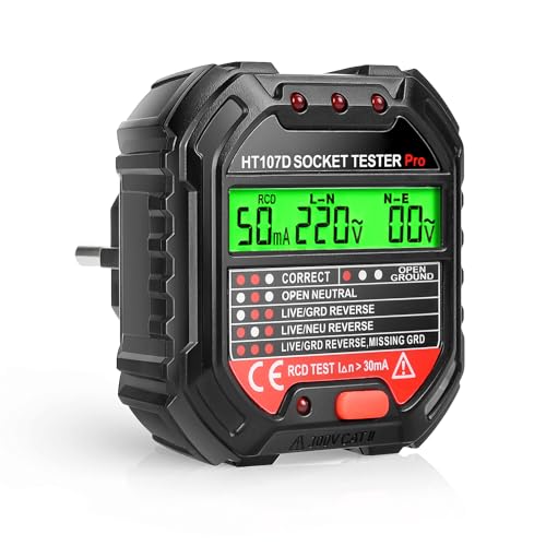 YOJOCK Socket Tester Uttagstestare med RCD-testning 90-250V/45-65Hz LCD-Spänningsdisplay fi Testare Automatisk Strömkrets-polaritet Spänningsdetektor Avbrottssökare