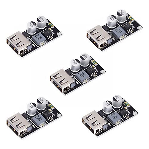 iHaospace 5 st DC-DC Buck Converter 6 V-32 V till 3 V - 12 V nedsteg omvandlare justerbar strömförsörjning USB-spänningsregulator snabbladdning konverteringskort för QC2.0 QC3.0 DCP FCP